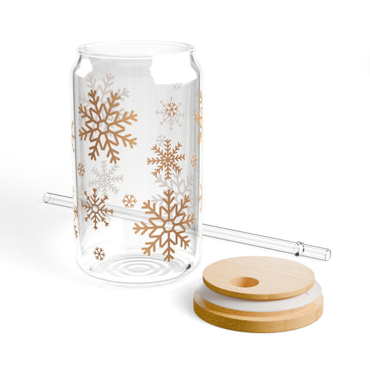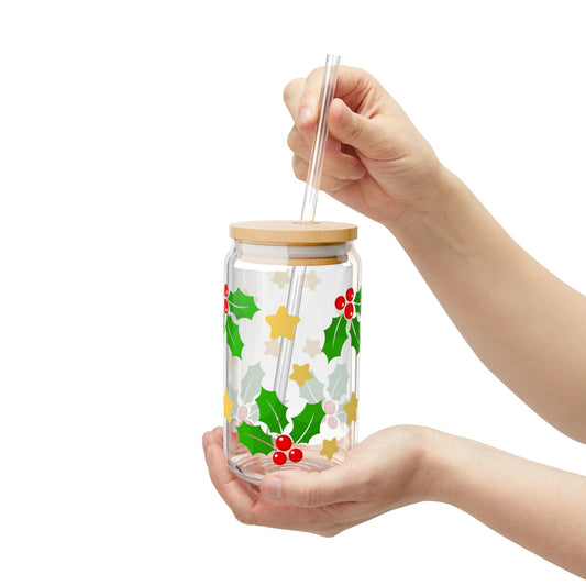 Holly Jolly Christmas Season Glass Cup, 16 oz Beige